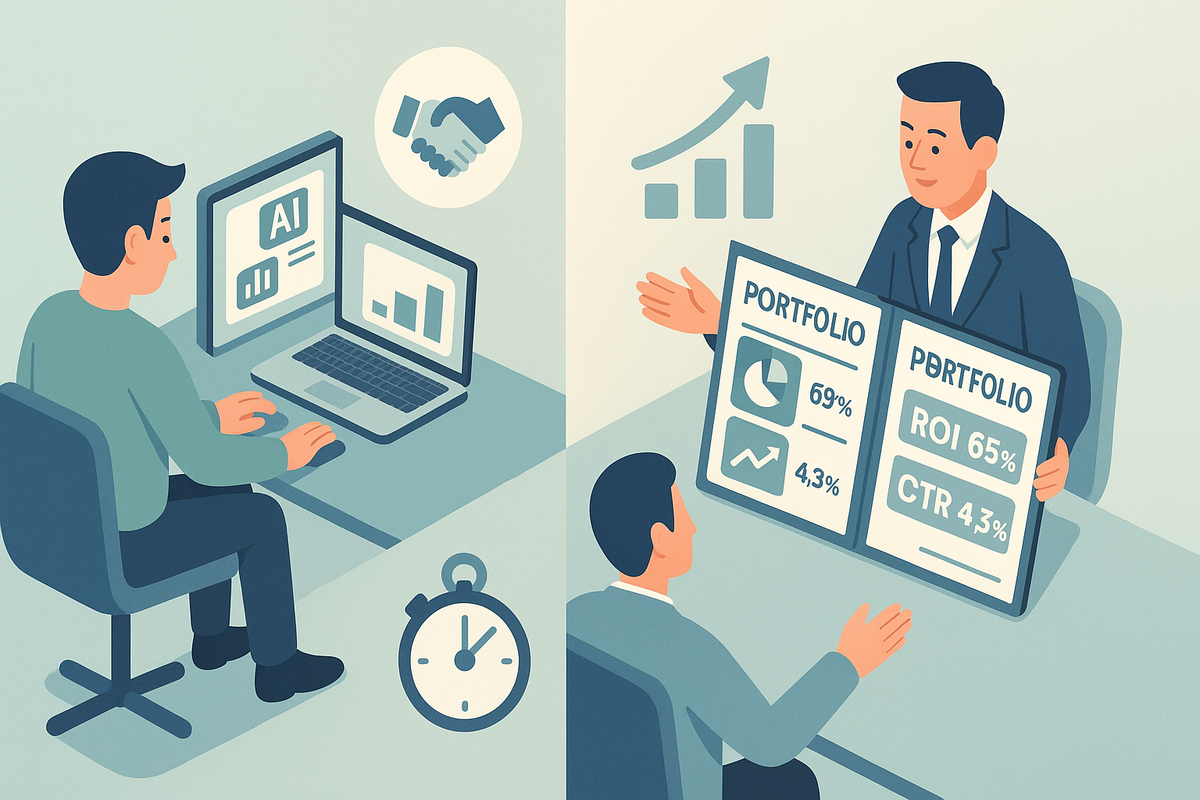 Портфолио — это не витрина картинок, а доказательство, что вы решаете задачи рынка. Покажите контекст, путь и результат в цифрах. HR и нанимающие менеджеры быстрее принимают решения по кейсам с измеримыми эффектами: конверсия, ROI, скорость цикла, снижение ошибок. Такой формат читается и сопоставляется проще, чем общие заявления.