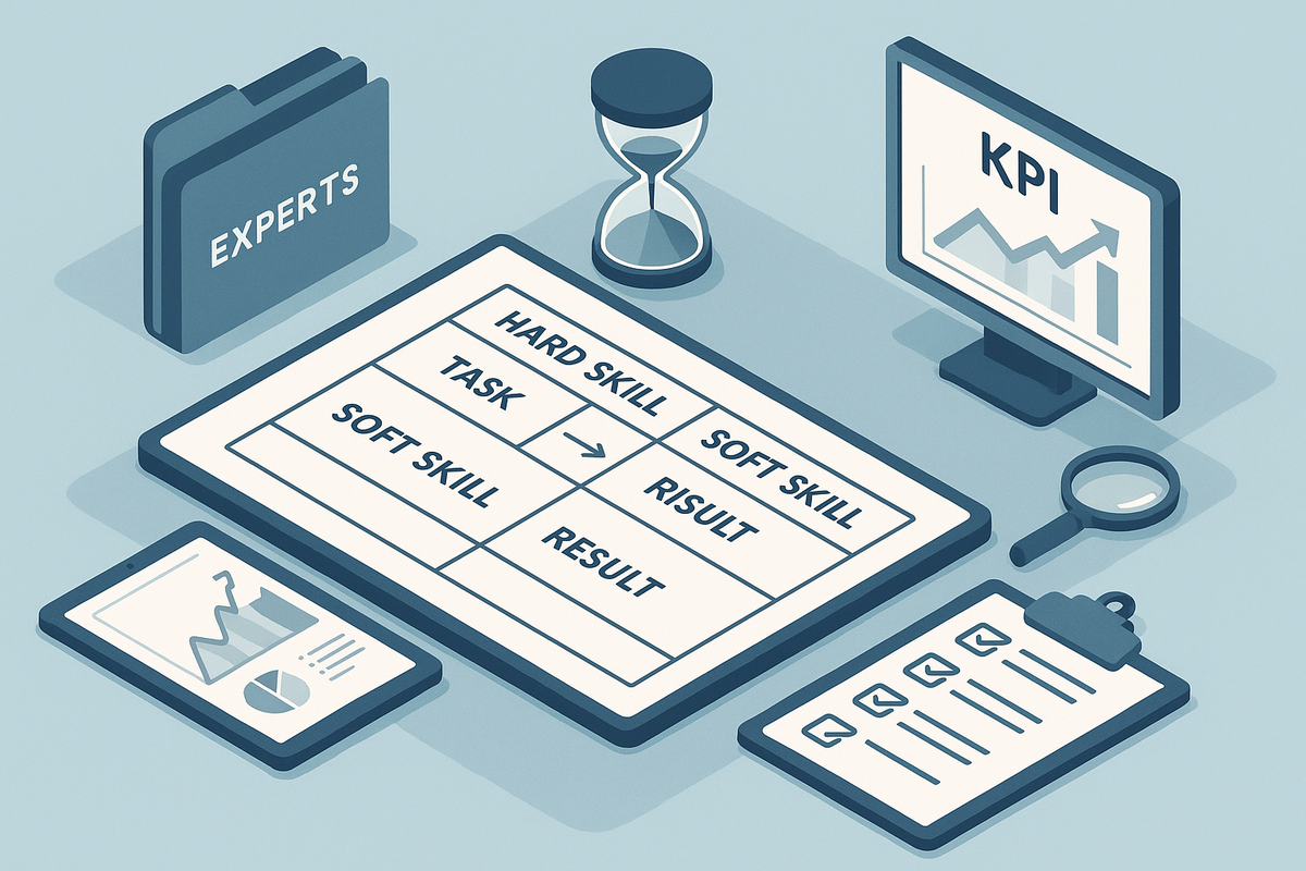 - Задача клиента: ускорить выпуск контента → hard: prompt-engineering, NLG-пайплайн → soft: тайм-менеджмент, ответственность → артефакт: регламент, примеры до/после, метрика «время цикла –35%».