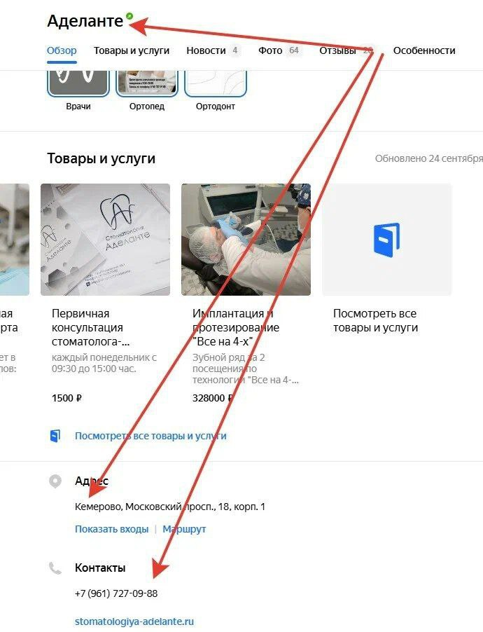 Убедитесь, что вы открыли в Яндексе нужную компанию с адресом и номером телефона, которые указаны на изображение.