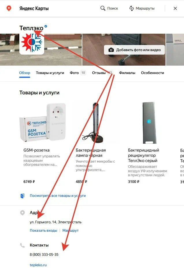 Убедитесь, что вы открыли в Яндексе нужную компанию с адресом и номером телефона, которые указаны на изображение.