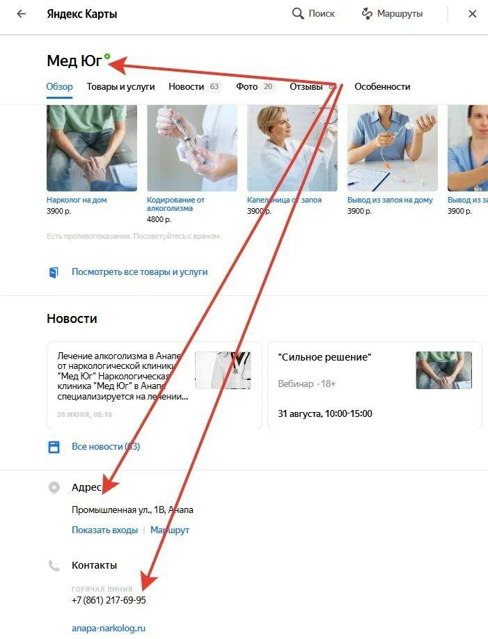 Убедитесь, что вы открыли в Яндексе нужную компанию с адресом и номером телефона, которые указаны на изображение.