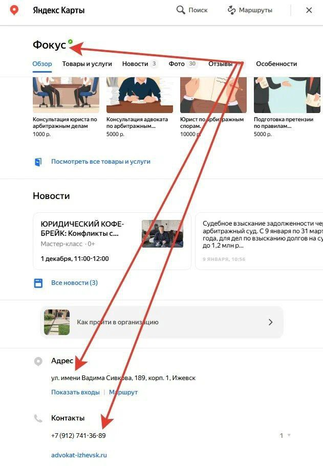 Убедитесь, что вы открыли в Яндексе нужную компанию с адресом и номером телефона, которые указаны на изображение.