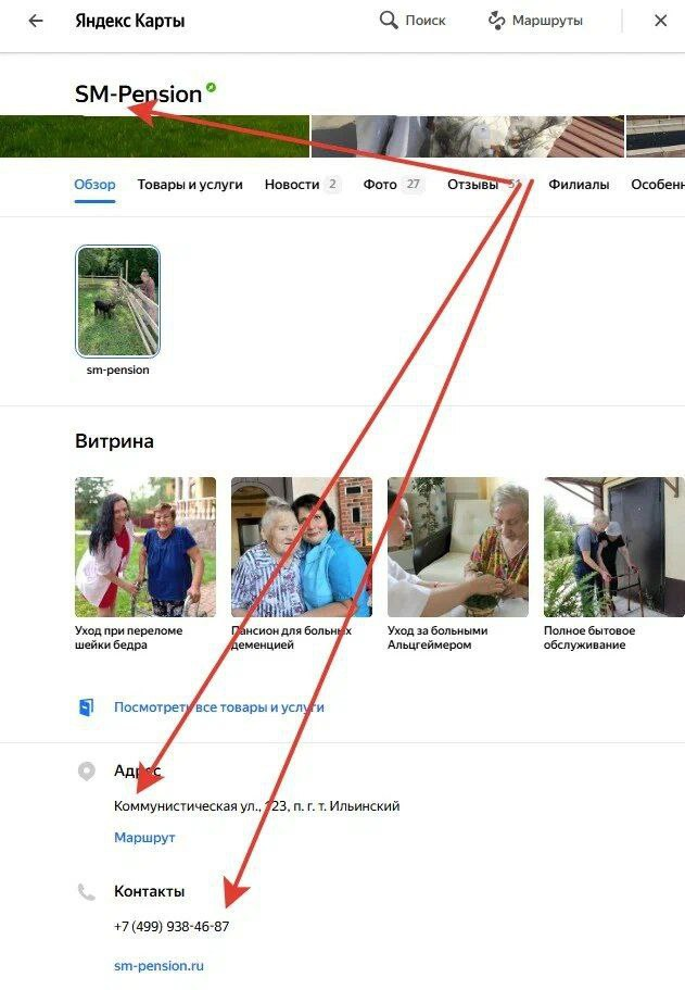 Убедитесь, что вы открыли в Яндексе нужную компанию с адресом и номером телефона, которые указаны на изображение.