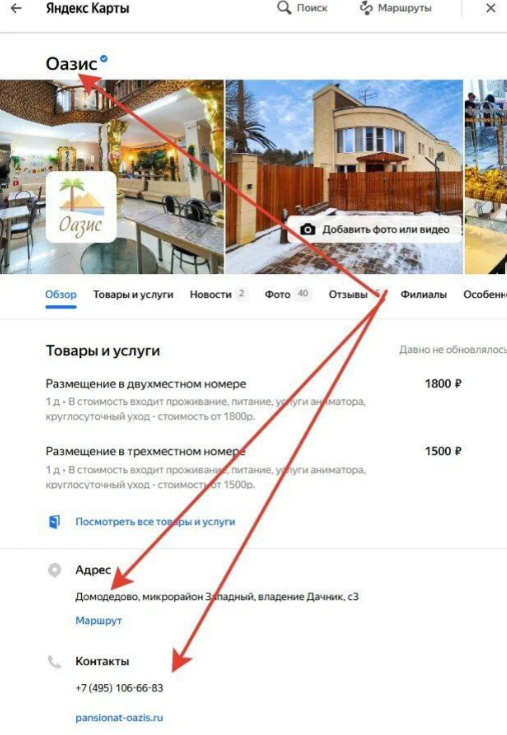 Убедитесь, что вы открыли в Яндексе нужную компанию с адресом и номером телефона, которые указаны на изображение.